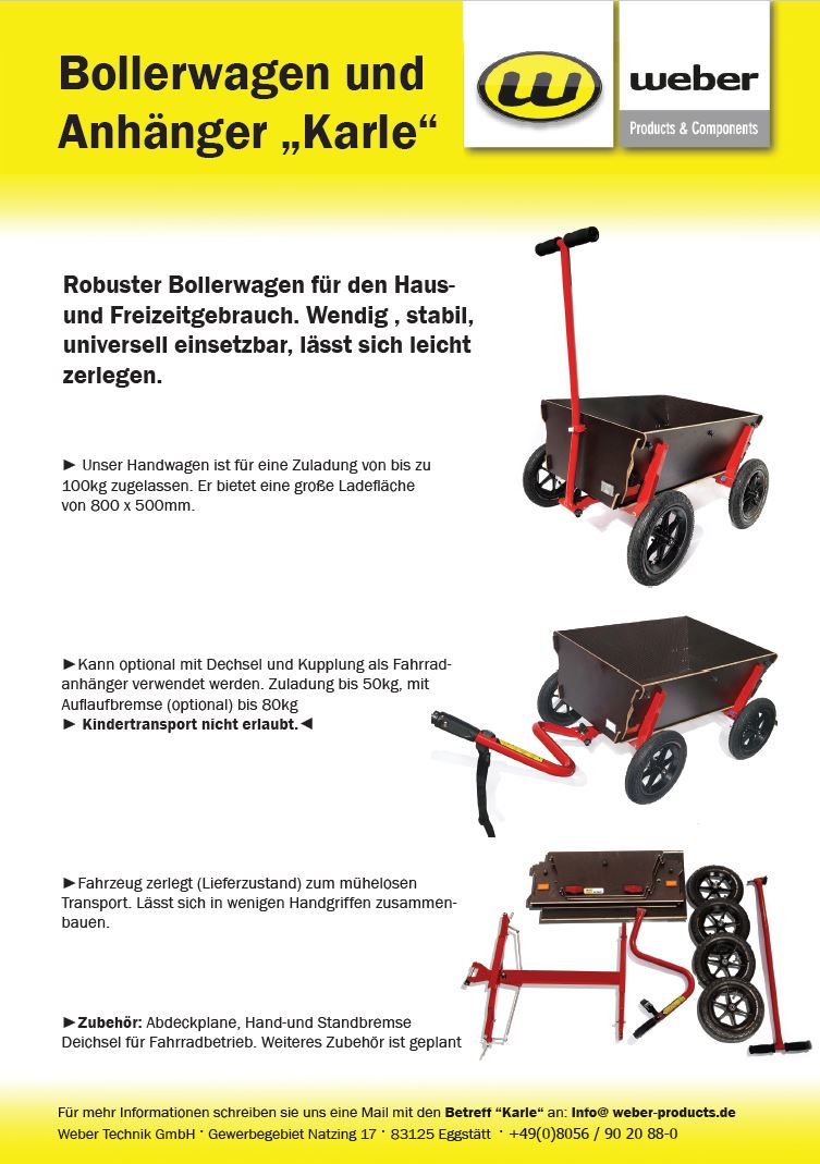 Mit optionaler Fahrraddeichsel und WEBER-Kupplung E wird der KARLE zum vollwertigen Fahrradanhänger.
